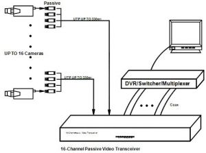 - fiecare cablu UTP cat-5 poate tramsmite simultan patru canale video